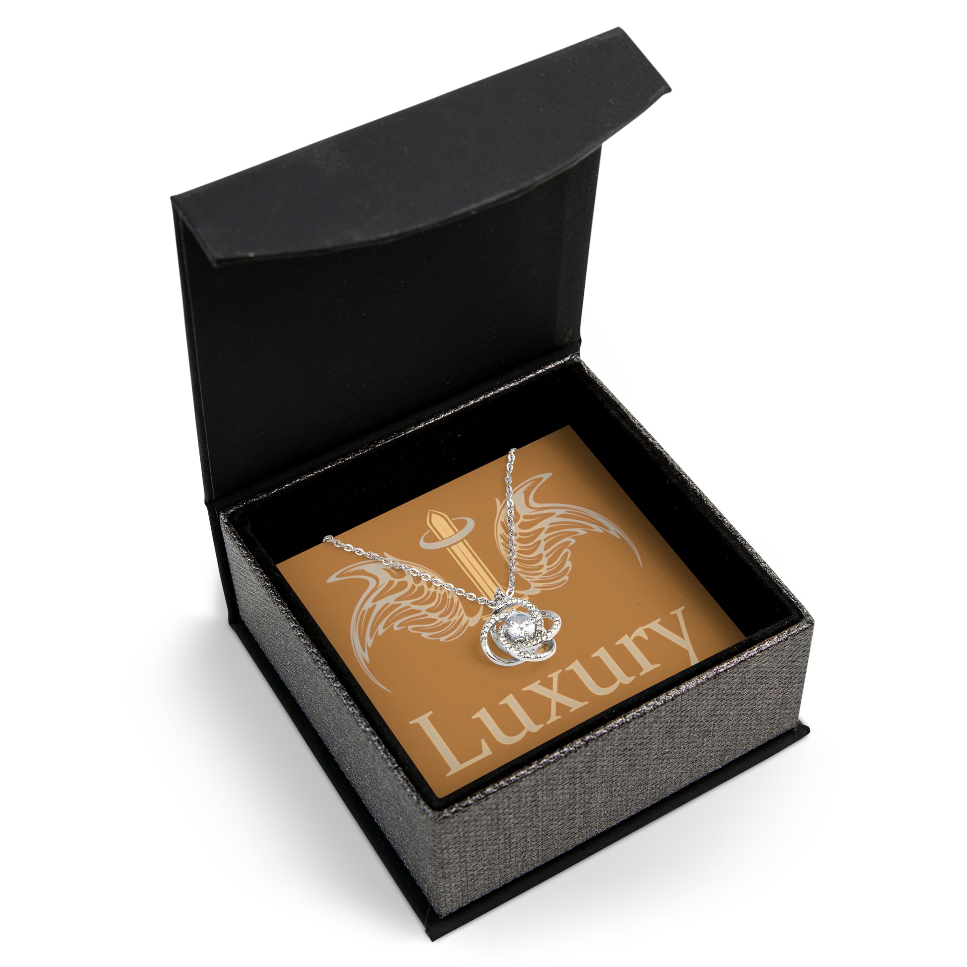 This custom love knot necklace features high-quality brass for the pendant, and glass crystal decorations, while the center features a stunning 6mm cubic zirconia stone. All pendants come with an 18"-22" adjustable chain made of highly durable stainless steel with a lobster clasp attachment. Choose between a regular stainless steel or an 18k gold-plated finish -- both are tarnish-resistant with enduring shine.